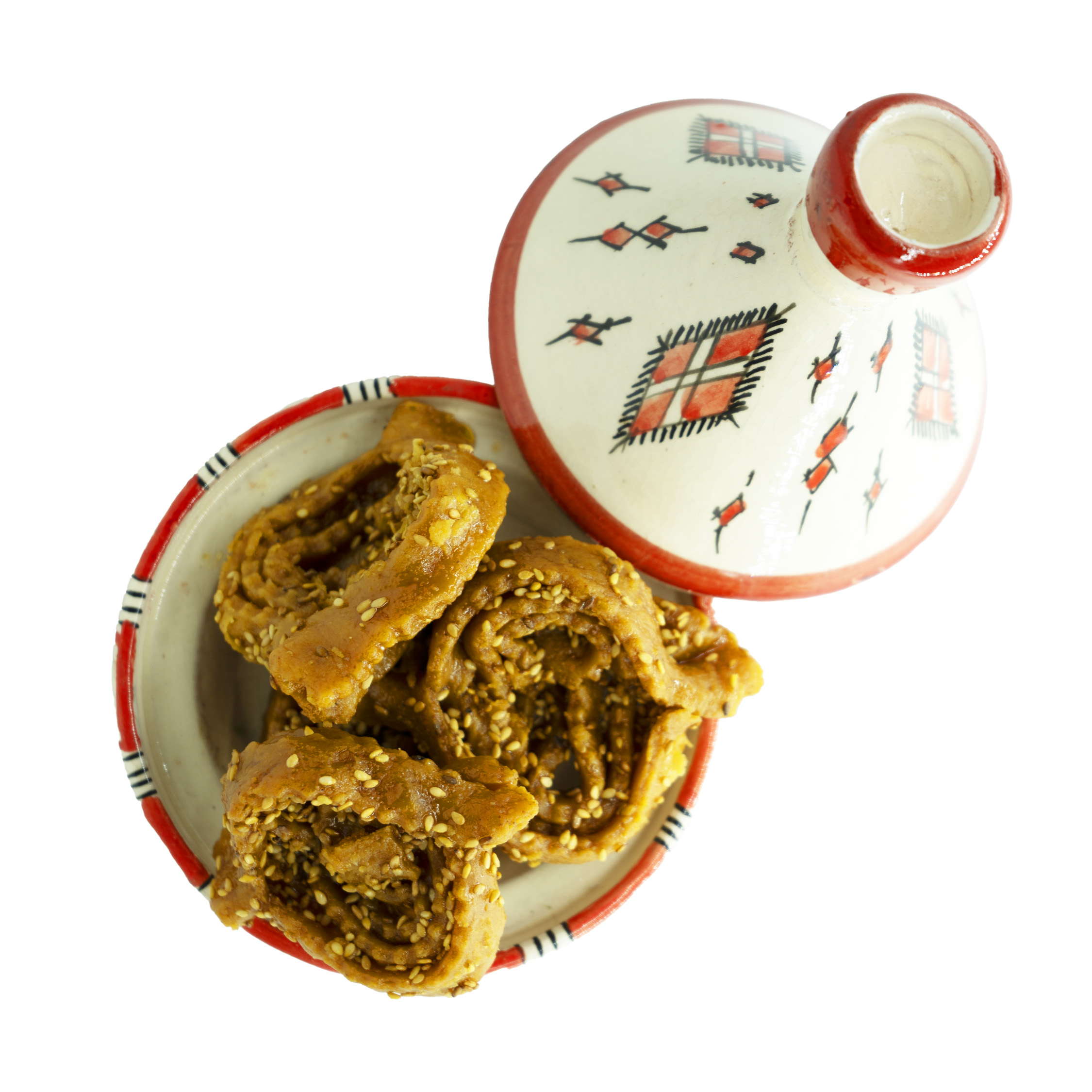 La Chebbakia è un dolce tipico della cucina marocchina, realizzato con una pastella speziata che viene fritta e poi ricoperta da miele. La nostra versione, arricchita con l’aroma delicato dell’aneto, rende questo dolce ancora più speciale. L’aneto, un’erba aromatico con un sapore fresco e leggermente pungente, si sposa perfettamente con il miele, creando un contrasto gustativo che esalta la dolcezza della preparazione. Tradizionalmente preparata durante le festività religiose, come il Ramadan, la Chebbakia è anche un ottimo snack per ogni occasione.